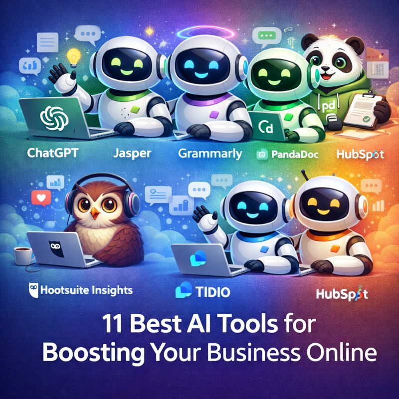 Businesses need to use the newest technologies available to them to stay ahead of the competition in the digital age. The advent of artificial intelligence (AI) is among the most important modern advances. Businesses may improve decision-making, increase consumer engagement, and streamline procedures with AI solutions. We’ll look at 11 Best AI Tools for Boosting Your Business Online in this blog post to help you grow your business online and improve productivity, profitability, and efficiency.